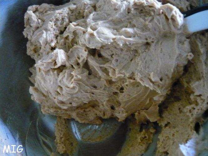 La ganache pralinée est devenue légèrement mousseuse une fois montée.