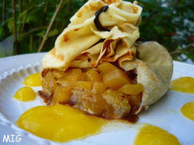 On peut les tartiner, les garnir, les saupoudrer, les rouler, les plier (j’en ai oublié ?) mais on peut aussi s’en servir d’écrin, comme ici, pour une garniture salée ou sucrée.