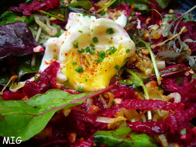 Faîtes cuire l’œuf mollet (6 mn à peine dans l’eau bouillante) ou poché.