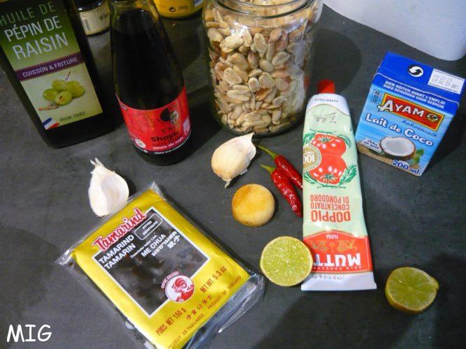 Mixez-les ou écrasez-les au pilon avec les piments épépinés, l’ail, le sucre, les feuilles de lime, le sel. Terminez en ajoutant le lait de coco, le jus de citron vert, le concentré de tomate, la sauce soja, la pulpe de tamarin. Si la sauce obtenue est trop épaisse, ajoutez un petit peu d’eau tiède.