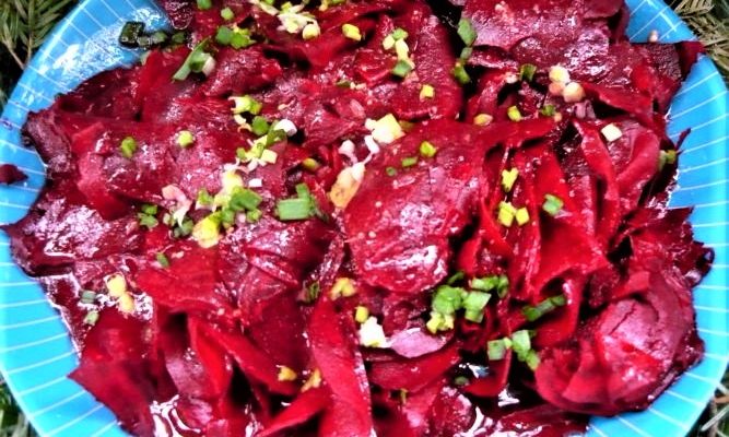 Pendant ce temps, mélangez la mayonnaise et le wasabi, coupez la truite en lanières d’environ 2 cm de large et 3 de long, faites de fines allumettes avec la pomme.