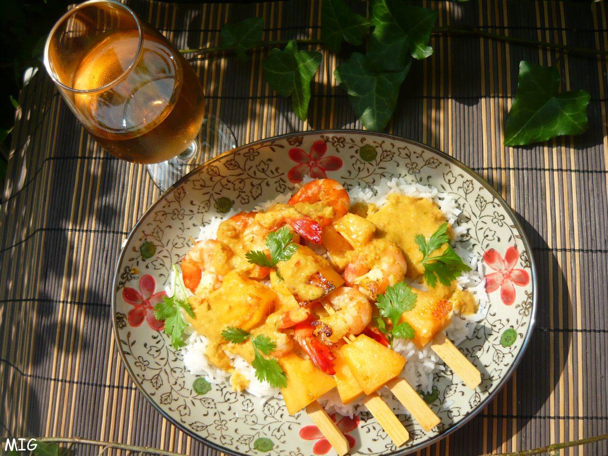 Brochettes de Crevettes et Melon à l’Indienne