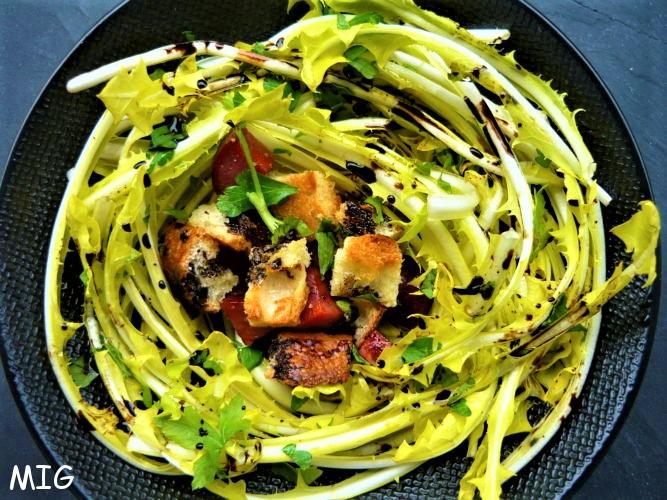 Salade de Pissenlits, Chorizo et Croutons Aillés Quand tu vas au marché après sept semaines d’enfermement suite à petite fracture, tu as…