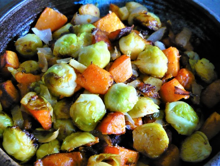 Cette poêlée de choux de Bruxelles et patates douces, qui plait aux petits comme aux…