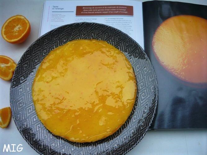 Ajoutez ensuite la crème à l’orange en formant un dôme au centre de la tarte.
