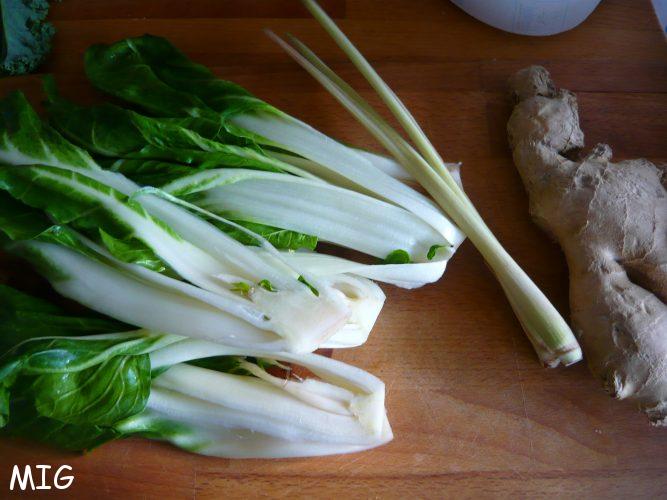 Les blettes ne se cuisinent pas qu’en gratin ou au jus de viande. Comme celles-ci sont petites, elles m’ont fait penser au chou pak choï ; du coup, j’ai eu envie de les cuisiner à l’asiatique, ce qui, à la finale, leur a plutôt bien réussi.
