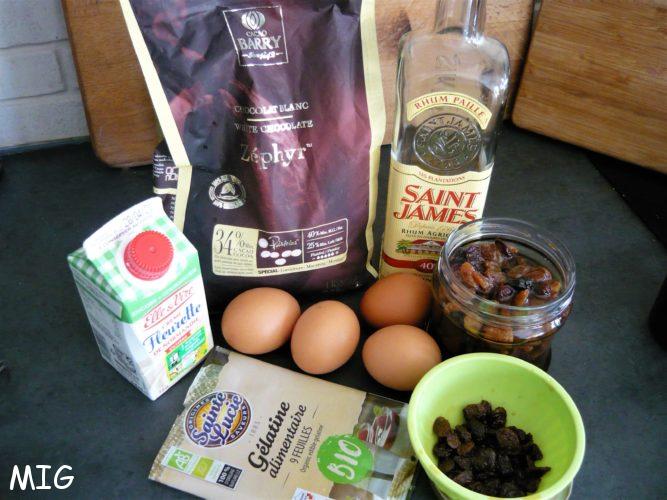 rhum (sur la photo, le bocal de raisins au rhum que j’ai en permanence et que je peux utiliser immédiatement)