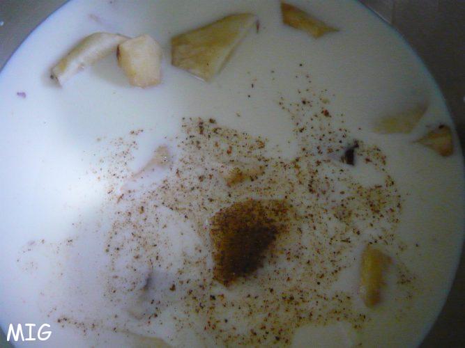 Le lard infusé dans le lait de cuisson des topinambours va leur donner un très léger goût fumé.