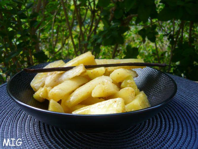 La carotte blanche (ne pas confondre avec le panais), contrairement à sa cousine orange, ne contient pas de béta carotène (raté pour les cuisses roses) ; plus douce en goût, elle se prête parfaitement à cette association avec la vanille.