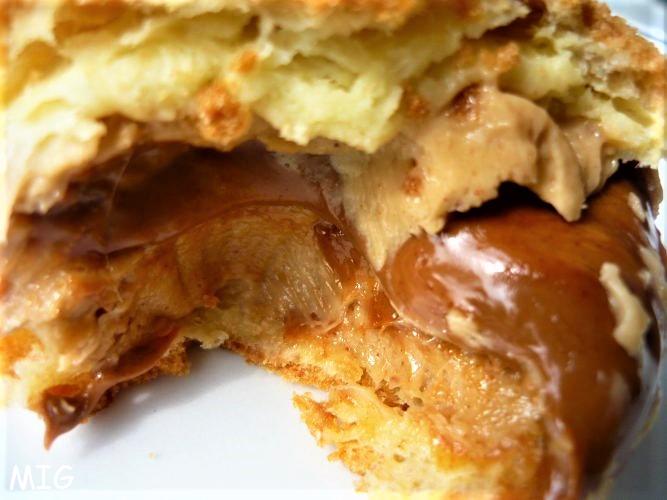 Mais oui, c’est souvent très écoeurant mais celui-ci….. la crème pralinée n’est pas trop sucrée, elle est plus ferme que dans pas mal d’autres recettes et avec l’insert, c’est très gourmand. La pâte à choux ça a été la pâte que j’ai eu le plus de mal à faire, et puis l’astuce, imparable, de Mélanie Dupuis, ajoutée à celle de Philippe Conticini, j’ai trouvé cela tellement facile que j’en ai enchainé un second. J’espère que tu vas te lancer car on fois qu’on a réussi, ça ouvre la porte à de nombreuses recettes, salées ou sucrées, selon ton imagination.