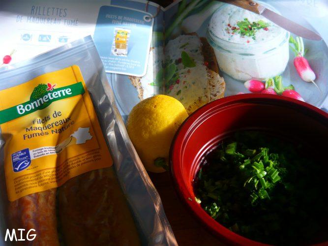 C’est à une présentation de produits Bonneterre, marque pionnière dans le bio puisqu’elle a été créée par M. Bonneterre (ça ne s’invente pas), en 1963, (donc très jeune…) qui compte également de nombreuses AOP (charcuterie, fromages etc…) que j’ai découvert ces rillettes. Tellement simples et délicieuses que ça fait déjà deux fois que je les fais en une semaine, il était donc normal de vous en faire profiter. Leur maquereau fumé, utilisé ici, n’est ni trop salé, ni trop fumé, ni trop gras comme c’est trop souvent le cas.