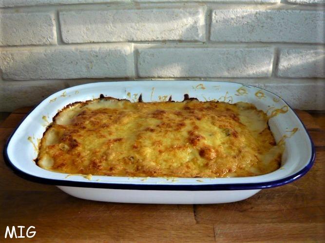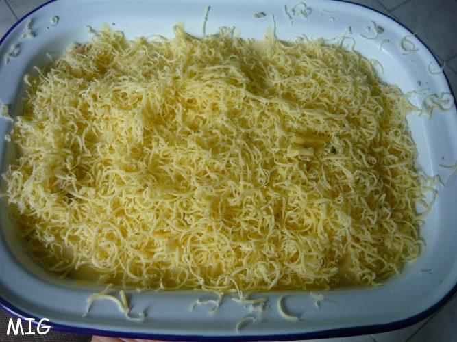 Quand c’est terminé, napper de sauce Mornay, recouvrir des 40 g de gouda restants, rapés.