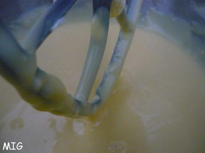Versez le fromage frais dans la cuve du robot pâtissier équipé d’une feuille (pas de panique si vous n’avez pas ce robot, un grand cul de poule ou saladier, de l’huile de coude, un fouet ou une spatule feront très bien l’affaire), et détendez-le à vitesse moyenne/rapide. Passez à vitesse moyenne et ajoutez progressivement les oeufs en raclant bien les bords de la cuve, puis la crème aigre (le yaourt nature pour moi) et l’extrait de vanille, puis le chocolat fondu et battez à vitesse moyenne/lente (ou fouettez à la main) jusqu’à ce que vous ayez un joli mélange lisse et homogène.