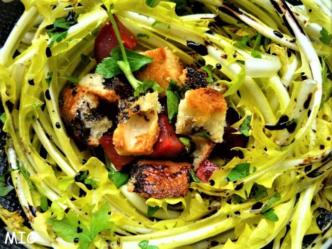 Quand tu vas au marché après sept semaines d’enfermement suite à petite fracture, tu as envie de tout, vraiment de tout, mais surtout de produits qui donneront des recettes faciles, rapides, qu’on peut faire à n’importe quel moment de la semaine, sans rester debout des heures et sans rien sacrifier à la gourmandise. En voici une qui pourra aussi bien faire une entrée qu’un vrai plat, il vous suffira d’augmenter les quantités, d’y faire couler un oeuf mollet et d’ajouter quelques cerneaux de noix.