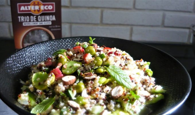Mélangez bien avant d’ajouter les petits pois, les orzo, les amandes, ; goutez et rectifiez l’assaisonnement, si besoin.