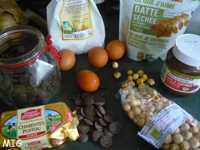 Pour la faire, j’ai utilisé une pâte à tartiner bio, équitable, d’une marque que j’aime beaucoup, Ethiquable, et comme j’avais d’autres produits de chez eux, dont de la poudre de dattes (pour remplacer le sucre), et du chocolat noir en vrac (65 %), je les ai également utilisés. Du coup, on pourrait croire que c’est un poste sponsorisé mais ça n’est pas du tout le cas, j’ai tout acheté. En fait c’est une des marques qui me fait aller en supermarché car je n’achète quasiment plus de nourriture industrielle (le Philadelphia pour les cheesecakes ça compte ???).