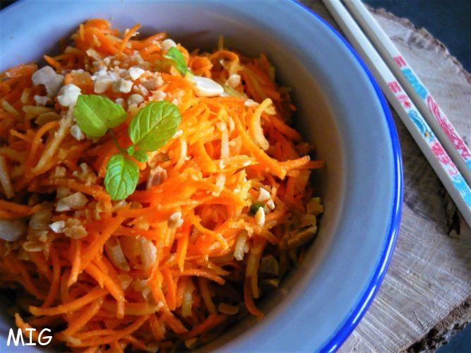 Je ne sais pas vous, mais moi, les salades épicées, pleines de peps, c’est toute l’année et comme, en hiver, on a encore plus besoin de vitamines, de légèreté (surtout pendant la période festive), cette salade de saison est quasiment en permanence dans mon frigo. C’est aussi une salade parfaite si on a un peu abusé, genre aux Fêtes de fin d’année…