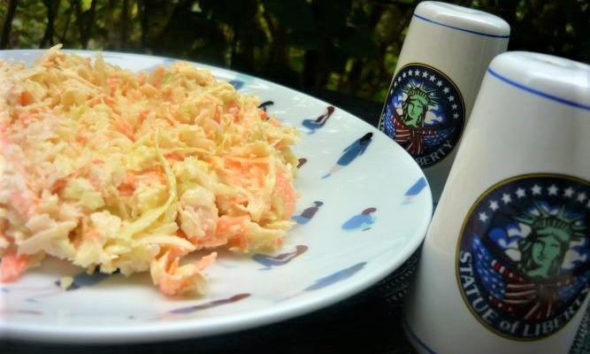 Dans un bol, émulsionnez le yaourt, la mayonnaise, le sucre, le vinaigre. Salez. Versez sur le mélange précédent et mélangez bien, goûtez et rectifiez l’assaisonnement si besoin.
