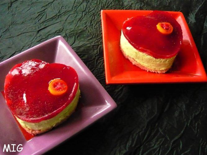 Quand j’ai lancé ce défi, je n’avais pas percuté que je devrais m’y coller, moi aussi ; du coup, j’ai ouvert frigo et placards, ressorti les coeurs et improvisé avec ce que j’avais, et j’avoue que question goût, je suis assez contente de moi, le matcha matchant bien avec les autres saveurs.