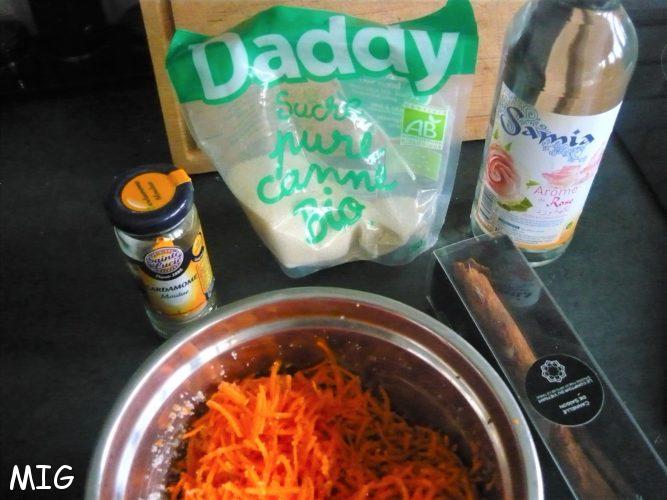 On lance la préparation la veille, pour laisser le temps à la carotte de macérer dans le sucre.