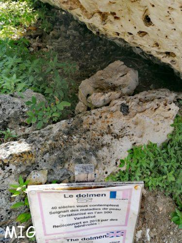 avant d’arriver, à l’église Sainte-Radegonde où se trouve « le Dolmen », pierre réputée soigner les maladies de peau :
