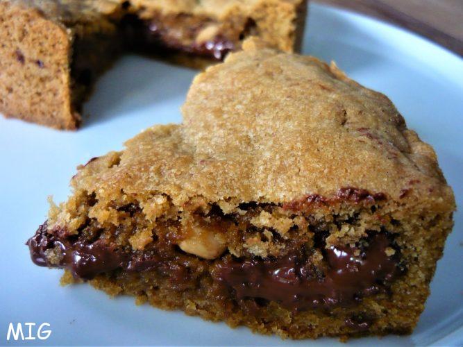 Ca y est, ça commence à sentir la rentrée, avec tout ce qu’il y a à faire, et, cette année, dans un contexte flou, sinon sombre, qui fait qu’on a encore plus besoin de se faire plaisir. Pas besoin d’y passer des heures pour sentir une bonne odeur de beurre et de chocolat embaumer la cuisine, avant de croquer dans ce cookie pile régressif comme il faut. Pour le « ‘à partager », c’est vous qui voyez… il peut faire entrée-plat-dessert en cas de gros coup de mou. Il est rapide à faire, donc parfait pour les urgences.