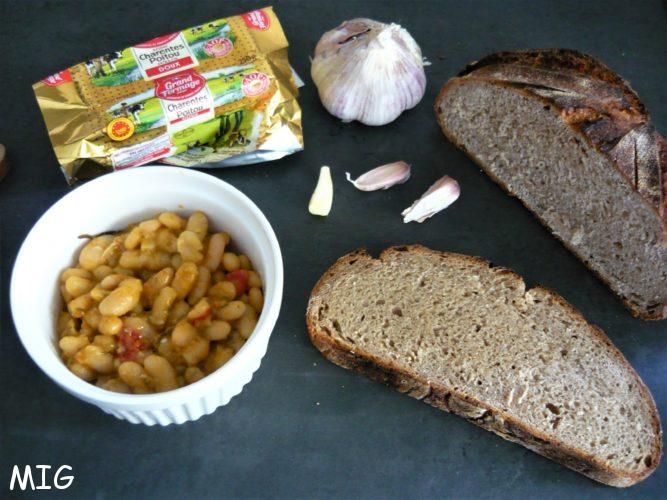 S’il vous reste des mogettes de la recette, vendéenne, de Mogettes au Jus, (je dis bien « s’il vous reste »…), sautez dans le département voisin pour faire une Tartine Charentaise, qui fera un repas veggie express parfait, si vous l’accompagnez d’une petite salade verte.
