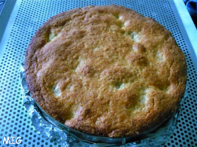 Quand le gâteau est uniformément doré, stoppez la cuisson, laissez-le refroidir sur une grille, en décerclant, ça ira plus vite.