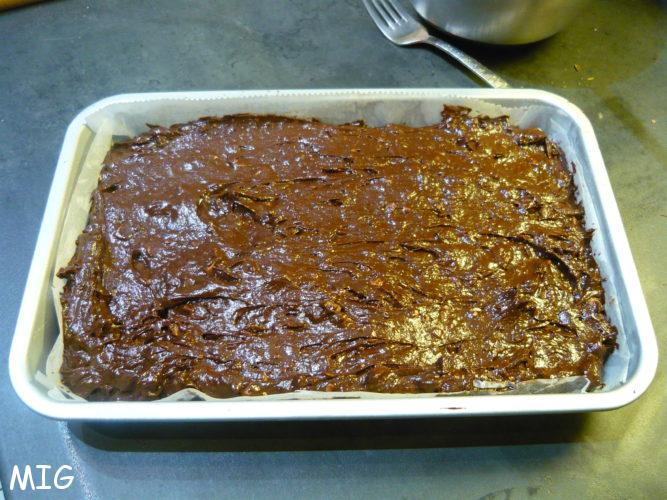 LA LISTE (la chef dit pour un moule à brownie de 27 x 18 cm, devine, c’est pile la taille du mien) :