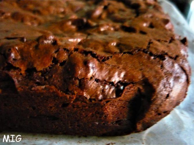 Attention, pour obtenir ce qui fait un vrai brownie et qui n’est pas si courant, à savoir le fondant humide au centre et la croute au-dessus, les ingrédients ont des indications précises « cassonnade la plus humide possible » ; sucre glace, à respecter mais, surtout, la cuisson au four en mode « ventilé » qui va dessécher la surface du gâteau et donner cette fine croûte.