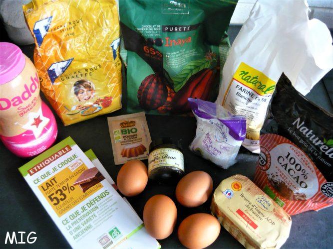 Pour le sucre, je vous ai indiqué les quantités de la recette mais, par goût, j’en ai supprimé et il a fait l’unanimité, c’est avec 110 g de chaque sucre qu’il est meilleur. A vous d’adapter selon votre goût et le pourcentage de cacao du chocolat que vous utilisez.