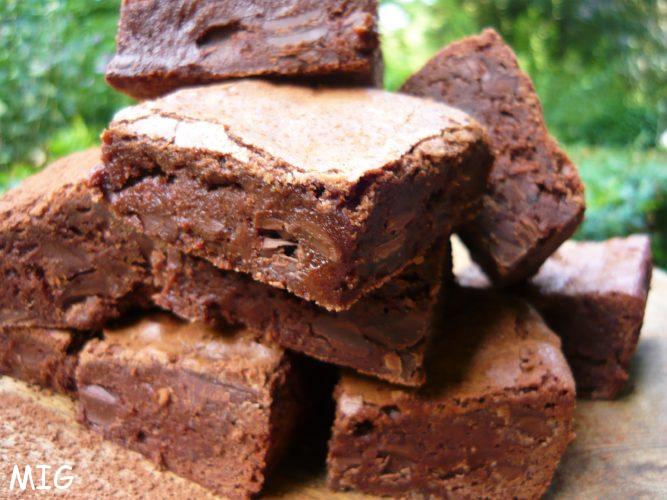 Je préviens, on est dans du brownie américain authentique, même si la chef est australienne, donc on est dans le beurre, dans le sucre, dans le chocolat noir et, histoire ne ne pas chipoter, on ajoute du chocolat au lait haché pour un fondant et une gourmandise à tomber. Tu es au régime, tu laisses tomber la recette, tu manges une pomme. Tu as un coup de déprime, tu as besoin d’un anti-stress naturel, tu sors les culs de poule et le fouet et tu plonges dans la recette.