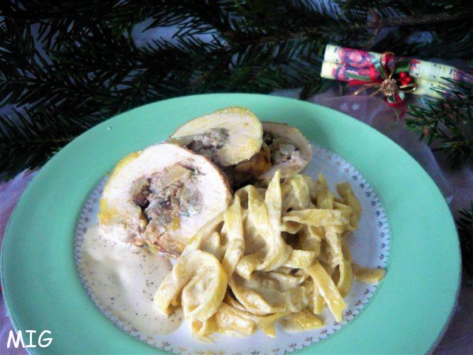 Dressez les assiettes avec des tranches de filet farci, les pâtes et nappez de sauce, servez sans plus attendre accompagné d’un Bergerac blanc moelleux ou d’un Cahors rouge.