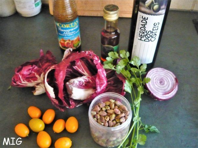Faites une vinaigrette avec une cuillérée à café de mélasse de grenade que vous détendez avec le sel avant d’ajouter trois cuillerées à soupe d’huile d’olive et d’émulsionner. Versez sur la salade et mélangez bien. La Trévise est une salade ferme qui va à peine s’assouplir le temps de faire le reste.