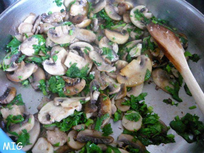 Cette version, qui contient 500 g de champignons de Paris est finalement assez légère car je n’y ai pas mis de fromage, lardons, jambon, ce que vous pouvez faire, car ce sont des ingrédients qui s’accordent parfaitement. Concernant les champignons de Paris, l’appellation n’ayant pas été protégée (comme pour le melon charentais) , on en voit (trop) fréquemment qui proviennent de Chine, Pologne ou Russie. Qu’on en trouve pas d’Île de France, car ils sont assez (trop) rares, je veux bien, mais soutenons nos producteurs et achetons-en des français, qui, de plus, n’auront pas perdu leur peu de goût, caractéristique des étrangers, en traversant la moitié de la planète.