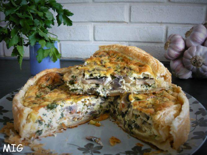 Versez la garniture sur la pâte en vérifiant que les champignons sont bien répartis et enfournez pour une trentaine de minutes.
