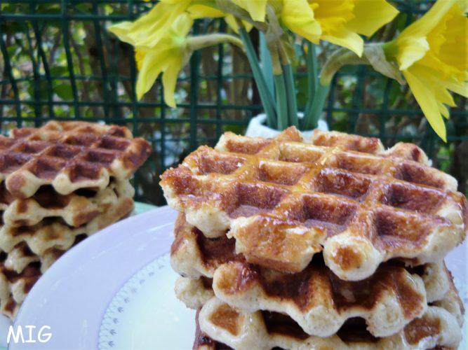 Ca faisait un moment que je regardais mon gaufrier tout neuf en me disant qu’il fallait absolument que je fasse ces fameuses gaufres crousti-gourmandes, avec les grains de sucre perlé qui croquent sous la dent. Quand je dis un moment, on va dire deux ans… Je me suis lancée pendant une pause déjeuner de télétravail, il fallait que je bouge ! J’ai tellement bougé que j’en ai fait plus de vingt. Bon, en fait, j’avais lancé la pâte le matin, dès l’aube, à l’heure ou blanchit la campagne, car il faut qu’elle lève. Comme je n’étais pas satisfaite à 100 % de la recette, j’en ai testé plusieurs et, finalement, c’est la recette officielle de la ville de Liège qui a été validée. En même temps, c’est un peu logique.