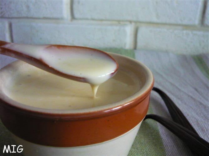 La sauce ne doit pas bouillir (85° maximum), mais juste épaissir en restant liquide. Lorsqu’un doigt passé sur la spatule laisse une trace bien nette, il faut la débarrasser immédiatement dans un autre récipient pour en stopper la cuisson. Filmez au contact et laissez revenir à température ambiante avant de placer au frigo.