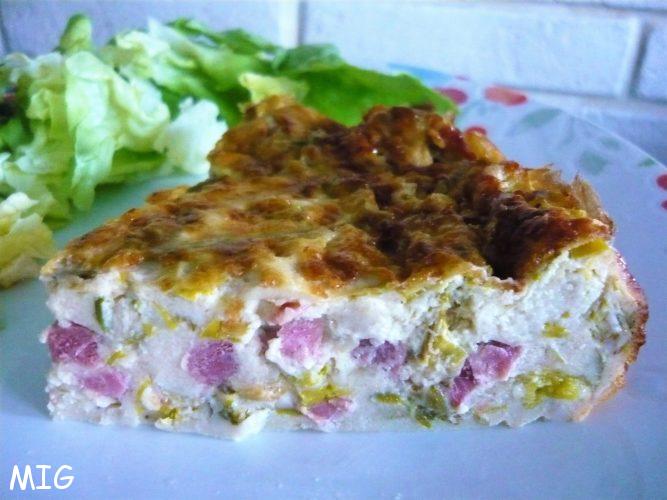 On pourrait croire que cette recette est la dernière cartouche quand c’est la dèche, que les placards sont vides et le frigo quasiment ou que j’ai une grosse crise de flemme, mais ce serait une erreur, car la quiche sans pâte aux poireaux est un plat, facile et rapide, que je fais par pure gourmandise. J’ai réalisé celle-ci pour qu’elle cuise pendant le déjeuner dominical et n’avoir qu’à la réchauffer au retour d’une grande balade en forêt.