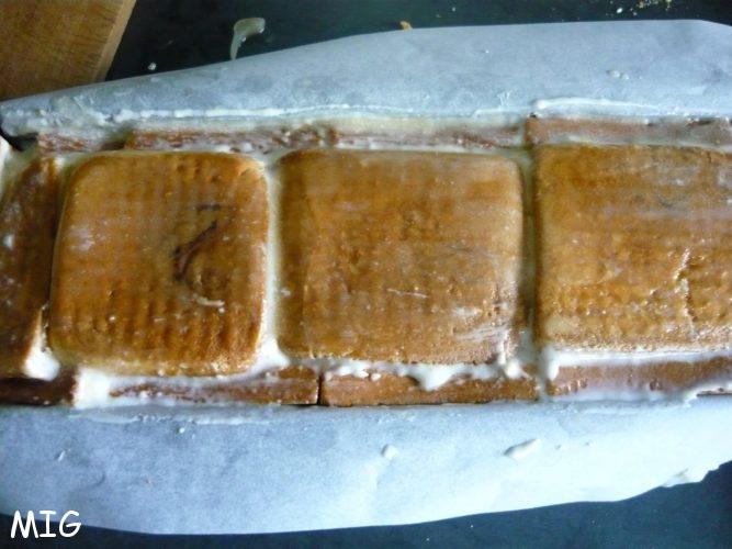 Je n’ai pas beurré la face interne du pain de mie et j’ai laissé les bords hauts et bas des tranches.