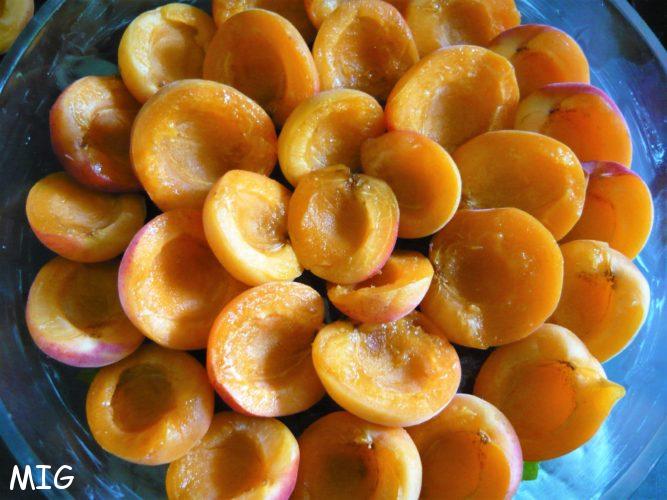 700 g d’abricots mûrs mais fermes (français, on veut du goût, du sucre, pas des trucs hyper durs et acides cueillis avant maturité pour supporter le voyage)