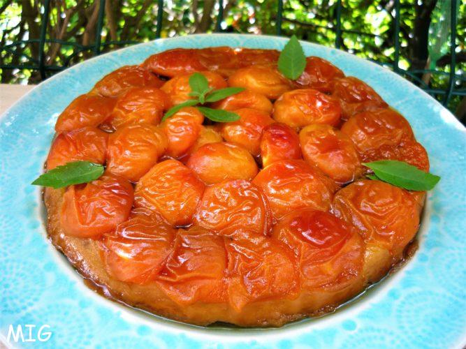La Tatin, c’est un peu ma tarte de feignasse, quand je n’ai pas envie de foncer un cercle (les moules j’ai abandonné, trop chiants à démouler) et, surtout, quand je veux, pour un fruit comme l’abricot qui « dégorge » à la cuisson, une tarte uniquement aux fruits, sans poudre d’amande (même si j’adore ça), pour absorber l’excédent de jus. La pâte étant au-dessus des fruits, elle ne se détrempe pas en cuisant.