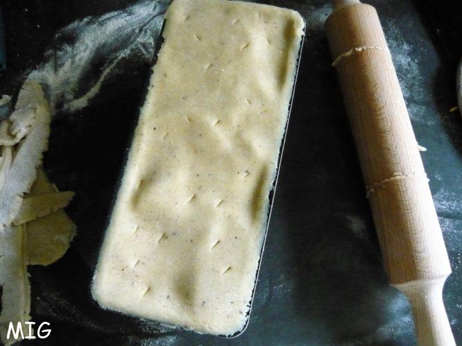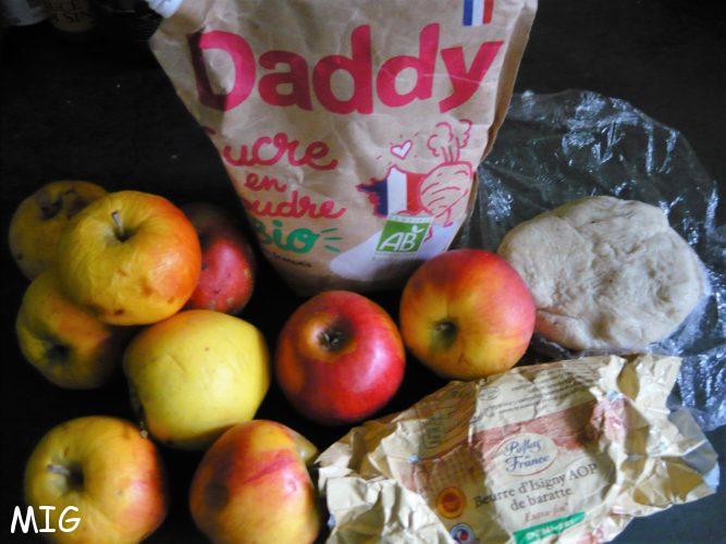 Je crois que je ne vais plus compter les recettes « pas prévues de publier » mais dont je fais quelques photos « au cas où » (je me suis faite avoir une fois donc je prévois), comme celle-ci, réalisée parce que j’avais quelques pommes flétries et le moule à cake, en même temps, dans mon champ de vision. J’ai fait décongeler une pâte sucrée (j’en fais toujours une grosse quantité pour congeler des pâtons) et le tour était joué.