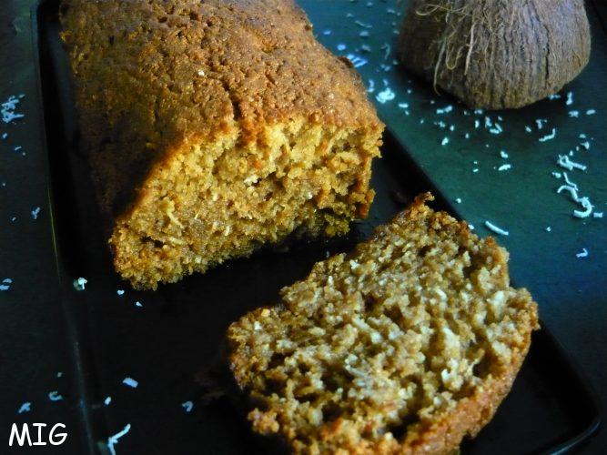 Sachant que j’ai utilisé de la noix de coco fraîche, râpée, achetée dans un supermarché indien, j’aurais pu dire « cake ultra moelleux ». Si vous avez la possibilité d’utiliser de la noix de coco fraîche, soit en la râpant vous-même, soit parce que vous n’êtes pas loin d’un supermarché indien, ne vous en privez pas, non seulement c’est bien moins cher que la sèche qu’on trouve, sous différentes marques, dans le commerce, mais en plus, cela donne plus de moelleux.