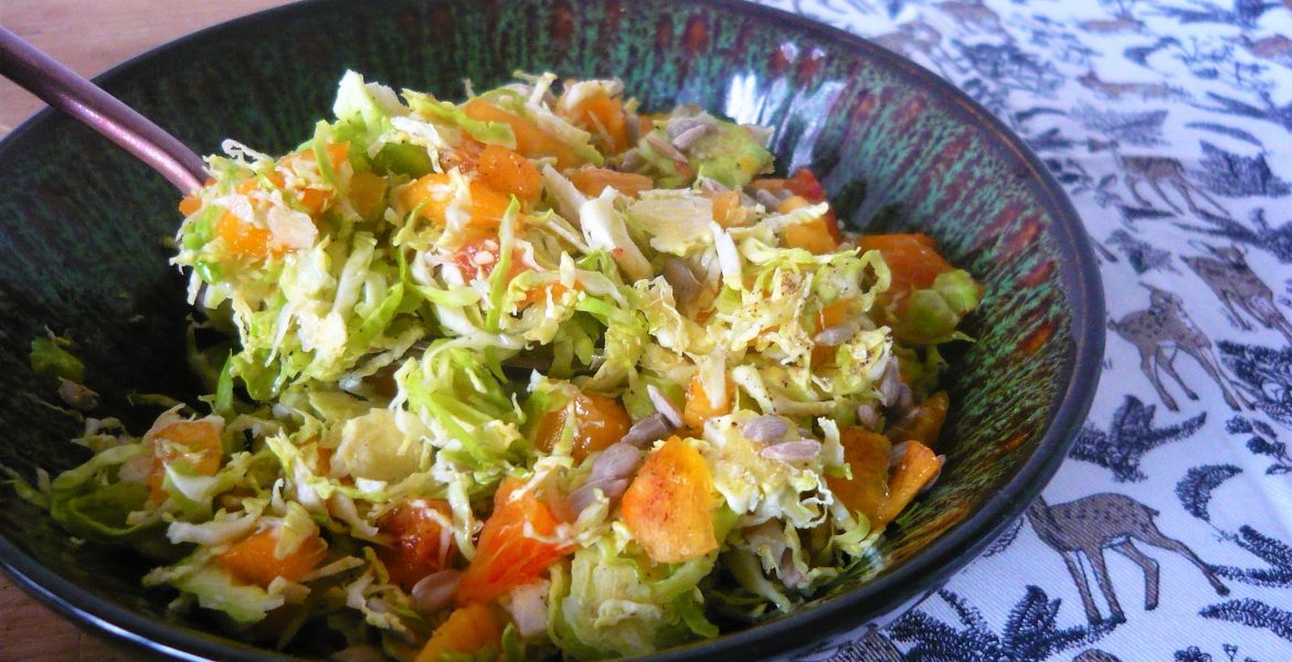 Si vous n’aimez pas les choux de Bruxelles ou que vous ne les consommez que cuits, il est grand temps de les redécouvrir grâce à cette salade de choux de Bruxelles au kaki et à l’orange sanguine, sucrée-salée, pleine de peps vite-faite bien-faite qui apportera un peu de légèreté vitaminée tout en étant très gourmande.