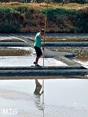 A peine arrivés au coeur des Marais Salants, nous sommes accueillis par le directeur de la coopérative qui nous en explique l’histoire, le fonctionnement et la vocation, avant de partir pour une promenade en Terre de Sel, accompagnés d’un guide-nature, passionné et incollable, tant sur la flore, que la faune, le climat, le sel, le métier de paludier.