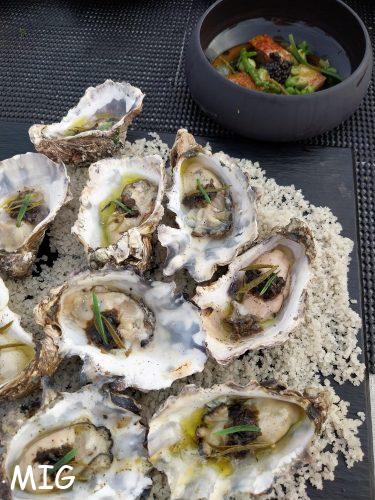 - Huitres n°2 Kercabellec à la braise sur lit de gros sel Le Gérandais