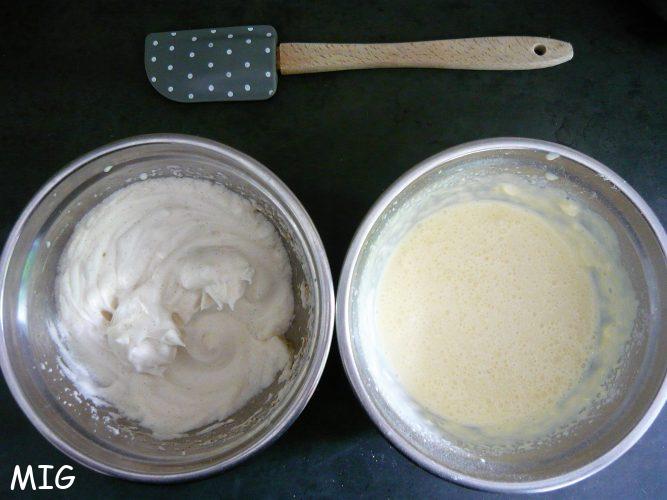 Versez-les sur la préparation crème-Maïzena et mélangez doucement jusqu’à obtention d’une crème mousseuse homogène.