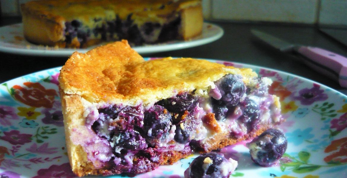 Répartissez les myrtilles sur tout le fond de tarte, recouvrez de la crème et enfournez à 190° jusqu’à ce que le dessus soit doré (une bonne vingtaine de minutes pour moi).