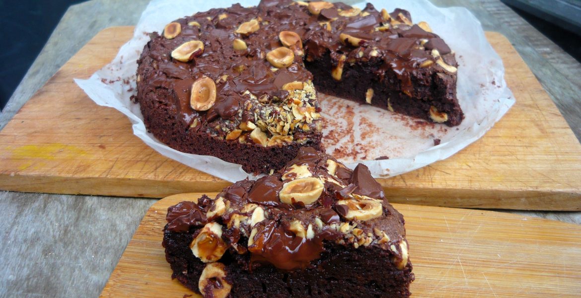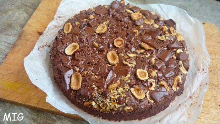 Sortez du four, laissez tiédir et dégustez tiède, donc avec le chocolat qui coule sur le gâteau, ou froid avec le chocolat qui forme une petite croûte un peu dure. Les deux versions sont, de toute façon, délicieuses.